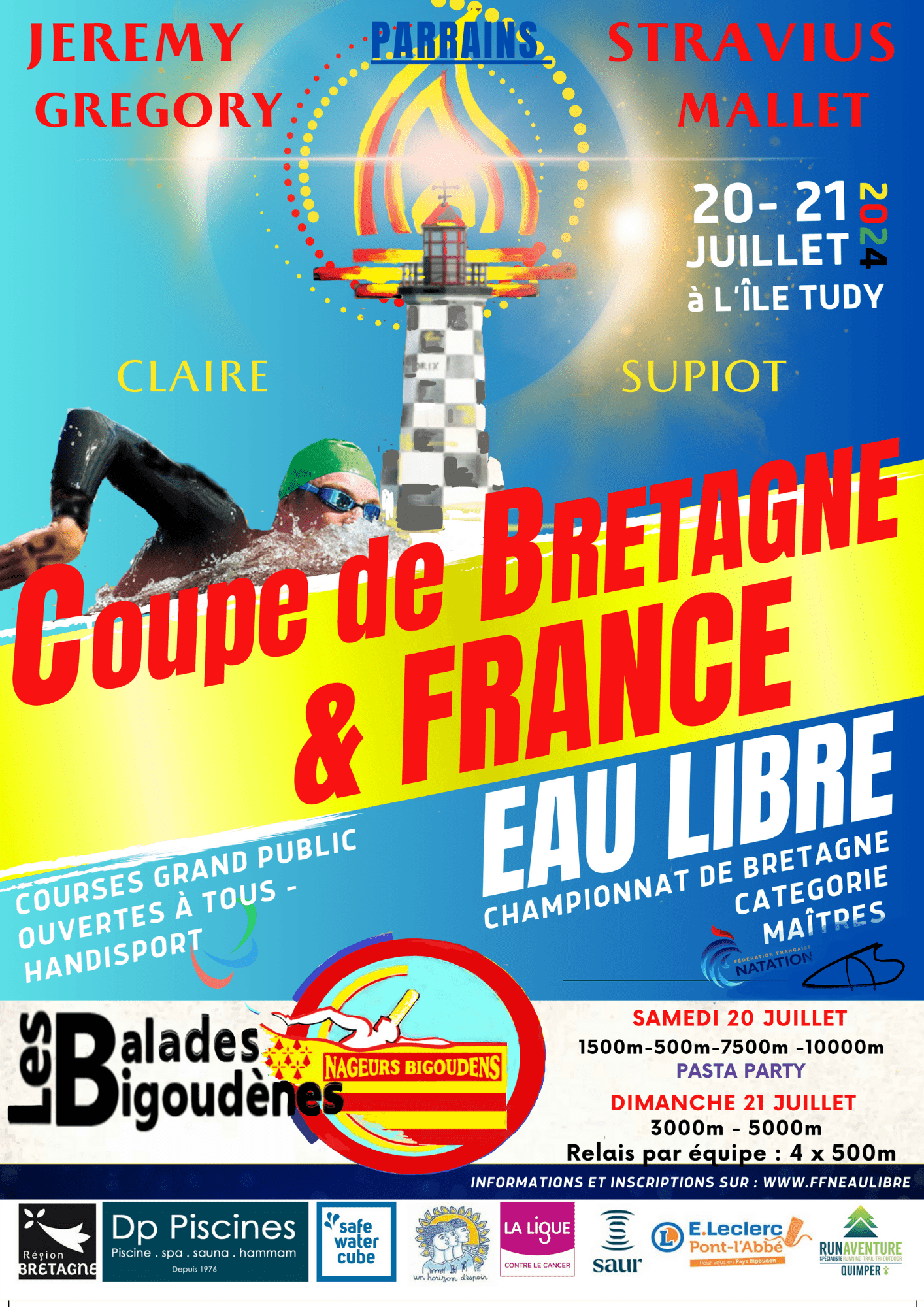 Organisé par l’association des Nageurs Bigoudens qui gère également les Balades Bigoudènes Penmarc’h Archipel des Etocs Durée 3 jours Groupe 8 à 15 personnes Effort physique Modéré Pré-requis technique Obligatoire En deux mots : Découvrez la nage en eau libre sur la côte Sud du pays Bigouden durant ce stage de 3 jours encadré par Didier Lederff, entraineur diplômé de natation. Stage d’initiation en eau libre dans le Pays Bigoudens : Un stage début juillet et autre fin aout 2025 Pour s’inscrire et assurer une qualité de pratique entre les participants il est privilégié les niveaux : Débutants : être en mesure d’effectuer 500 mètres dans la nage de son choix et parcourir moins de 1500 mètres en 1 heure de séance. Intermédiaires: être en mesure d’effectuer 1000 mètres dans la nage de son choix et parcourir moins de 2500 mètres en 1 heure de séance. À partir de 590 € / personne Pour participer : Vous n’êtes pas encore adhérent de l’association ? C’est simple, il vous suffit de cliquer sur lien […]