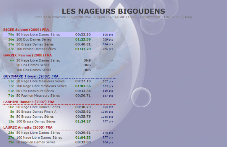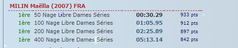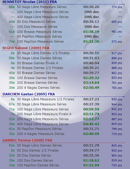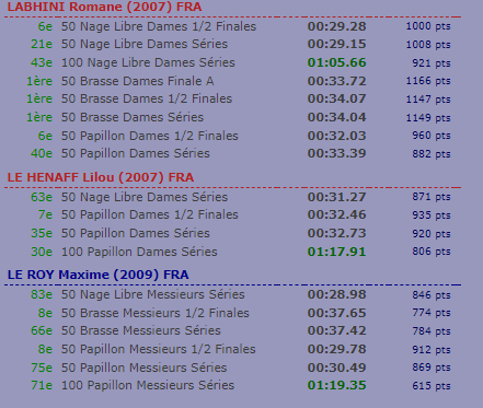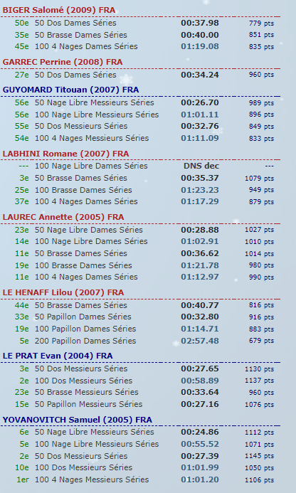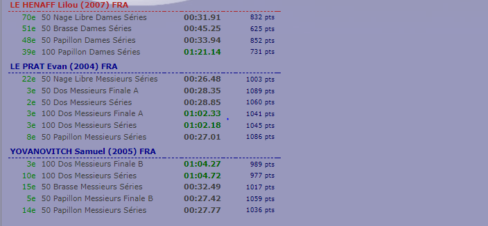 Et aussi : Samuel Yovanovitch 3e sur 50NL (1082 pts) et 2e sur 50m Brasse.