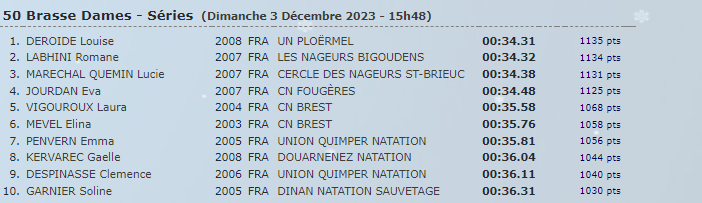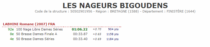 Romane Labhini 1ère sur 50m Brasse (1081 pts)